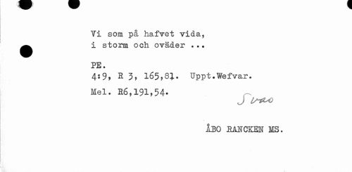 //// Ti som på hafvet vida, ^^ i storm och oväder . ?. //// PE. //// 4:9, R 3, 165,8}. Uppt.Wefvar. //// Mel. R6,191,54» //// J IS1U) //// ÅBO RANCKEN MS. ////