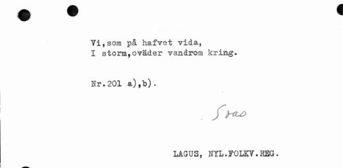 //// Vi,som på hafvet vida, I storm,oväder vandrom kring. //// Ur.201 a),b). //// ff€U> LAGUS, HYL.FOLKV.REG. ////