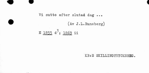 //// Vi sutto efter slutad dag ... W (Av J.L.Runeberg) //// E 1855 d5; 1869 ii //// KB:S SKILLIHiJTRYCKS EEG. ////
