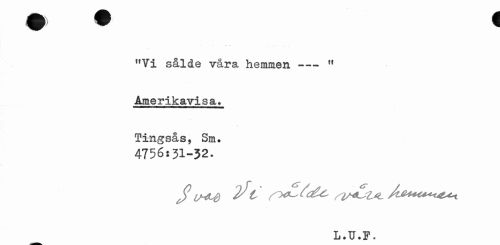 //// f,Vi sålde våra hemmen---M //// Amerikavisa. Tingsås, Sm. //// 4756:31-52. //// L.U.F. ////