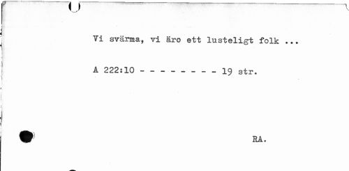 //// v. J o //// Ti svärma, vi äro ett lusteligt folk ... A 222sl0 . ...-19 str. ////