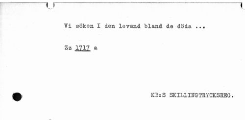 //// v..' v //// Yi söken I den levand bland de döda ..• //// 1 //// Zz 1717 a //// ^ KB;S SKILLINGTRYCKSREG. ////