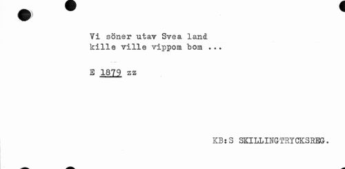 //// I //// / //// Vi söner utav Svea land-kille ville vippom bom ... //// E 1879 zz //// ^ KB;S SKILLINGTRYCKSREG. ////