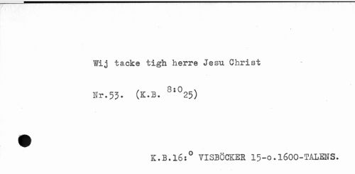 //// Wij täcke tigh herre Jesu Christ Kr.53. (K.B. 3;025) //// K.B.l6:° VISBÖCKER 15-o.1600-TALENS. ////