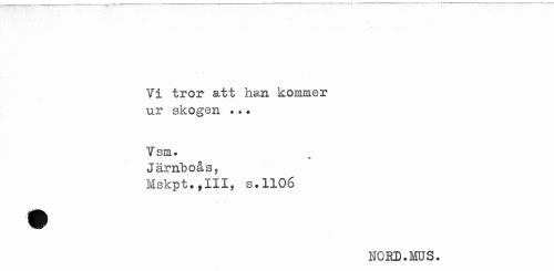 //// Yi tror att han kommer ur skogen •.? //// Vsm. //// Järnboås, //// Mskpt.,111, s.1106 //// NORD.MUS. ////