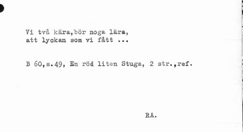 //// > ; //// ¦ //// i //// Yi två kära,bör noga lära, att lyckan som vi fått //// B 60,s.49, En röd liten Stuga, 2 str.,ref. //// l //// -I //// RA. ////