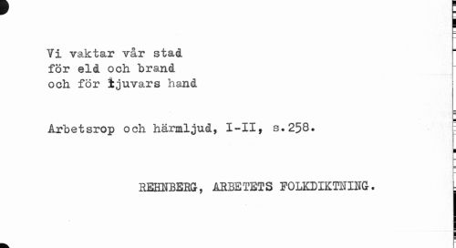 //// a ¦ //// Vi vaktar vår stad för eld och brand och för ljuvars hand //// ¦ //// Arbetsrop och härmljud, I-XI, s.2$Q. \ //// ¦ //// REHNBERG, ARBETETS FOLKDIKTHIHG. L ////