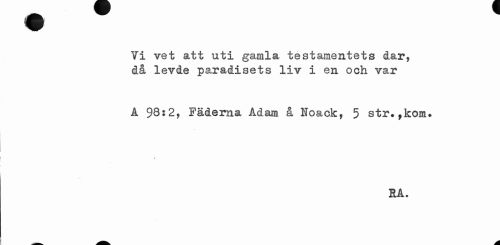 //// Yi vet att uti gamla testamentets dar, då levde paradisets liv i en och var //// A 98^2, Fäderna Adam å Noack, 5 str. fkom. //// RA. ////