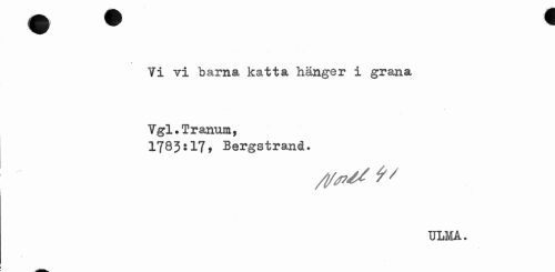 //// % //// Yi vi barna katta hänger i grana //// Vgl.Tranum, 1783:17, Bergstrand. //// ULMA. ////