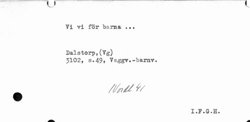 //// Yi vi för barna . •. //// Dalstorp,(Yg) 3102, //// s.49, Yaggv*-barnv. //// /Ifadtt/ //// X #F.G-.H. ////