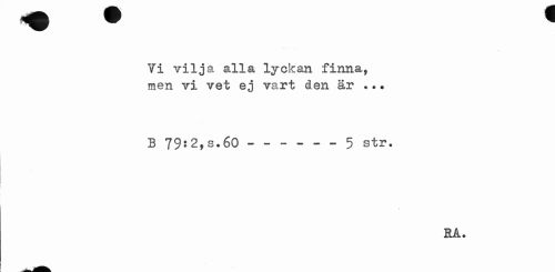 //// Yi vilja alla lyckan finna, men vi vet ej vart den är ..? //// B 79:2,s.60---•--5 str. //// RA. ////