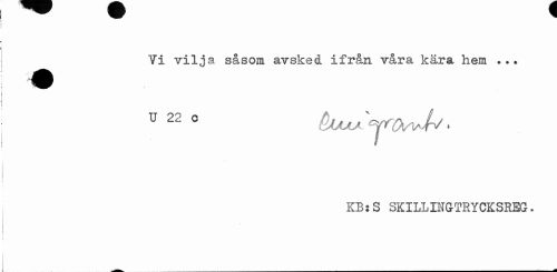 //// Yi vilja såsom avsked ifrån våra kära hem ... //// u 22 0 Pjjujl yn^Jv» //// KBjS SKILLINGTRYCKSREG. ////