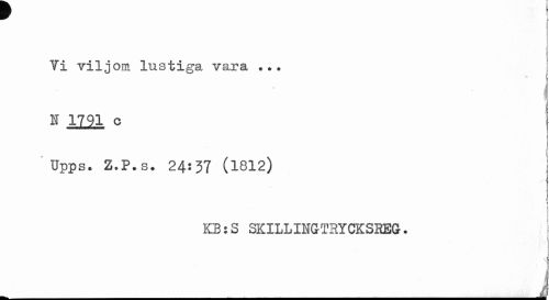 //// r //// Ti viljom lustiga vara ... //// I 1791 c } //// I //// I //// Upps. Z.P.s. 24:37 (1812) //// 1 //// KB:S SKILLINGTHYCKSREG. //// ___^A^J ////