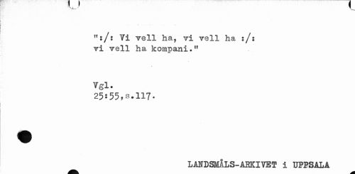 //// ":/: Vi vell ha, vi vell ha :/: vi vell ha kompani." //// Vgl. //// 25!55,s.117. //// LANDSMÅLS-ARKIVET i UPPSALA ////