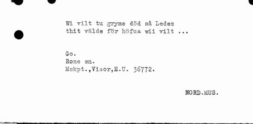 //// Wi rilt tu gryme död så Ledez ^ thit välde för höfua wii vilt ... //// So. //// Rone sn. //// Msfcpt.,Visor,E.TJ. 36772. //// HORD.MUS. ////