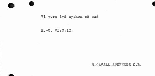 //// « ... //// Vi voro två syskon så små //// H.-O. VT:C:12. //// H-CAVALL-STEPHENS K.B. ////