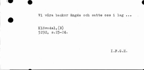 //// Vi våra hackor ängde och satte oss i lag ... //// Klövedal,(B) 5292, s.23-24. //// X • F • G • B. • ////