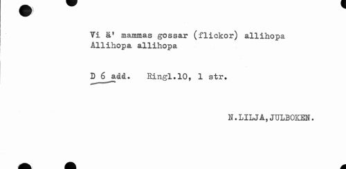 //// Ti ä* mammas gossar (flickor) allihopa Allihopa allihopa //// D 6 jiåå. Ringl.10, 1 str. //// N.LILJA,JULBOKEN. ////