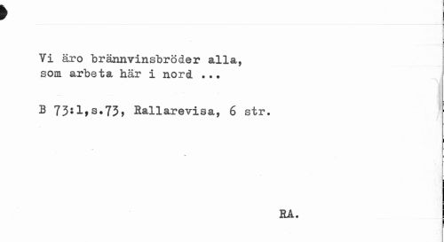 //// ) ___:_ y //// Vi äro brännvinsbröder alla, som arbeta här i nord //// B 73il>s.73> Rallarevisa, 6 str, //// -«. = //// ha. i ////