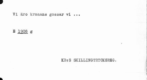 //// w //// Yi äro kronans gossar vi ... E 1908 g //// b //// KBjS SKILLIHGrTEYCKSREG. //// i //// I //// k i ////