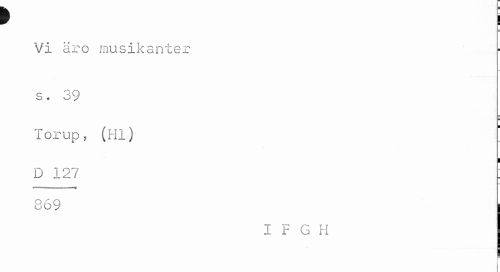 //// f i //// Vi äro musikanter //// s. 39 //// Torup, (Hl) ' //// D 127 ' //// 869 //// I F G H //// i //// I ////