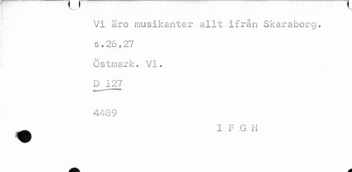 //// Vi äro musikanter allt ifrån Skaraborg, s•26 5 27 Östmark. VI. //// p //// D 127 //// 4489 //// I F G H ////