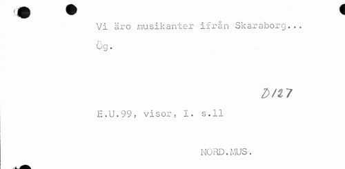 //// Vi äro musikanter ifrån Skaraborg... //// ög. //// b/W //// E.U.99, visor, I. s.ll //// NORD.MUS. //// .^Bfcfc, ////