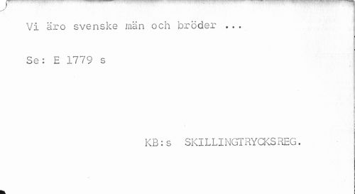 //// Vi äro svenske män och bröder ... Se: E 1779 s //// KB:s SKILLINGTRYCKS REG. //// t ////