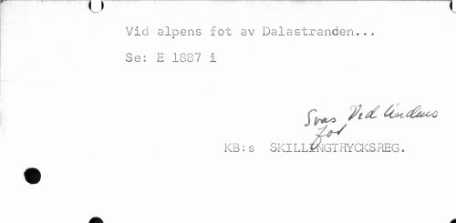 //// V___c v //// Vid alpens fot av Dalastranden... Set E 1887 i //// KB: s SKILL^GTRYCKSREG. ////
