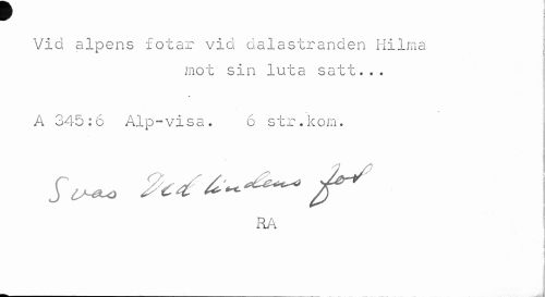 //// w //// Vid alpens fotar vid dalastranden Hilma //// mot sin luta satt... //// A 345:6 Alp-visa. 6 str.kom. //// iiA ////