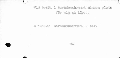//// ' v //// Vid besök i barndomshemmet mången plats //// för mig så kär... //// A 484:29 Barndomshemmet. 7 str. ////