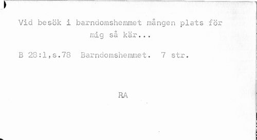//// w //// Vid besök i barndomshemmet mången plats för //// mig så kär... //// B 28:15 s.78 Barndomshemmet. 7 str. //// RA //// \ ////
