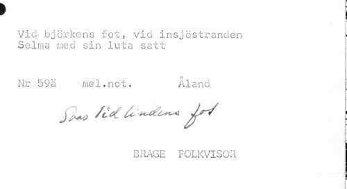 //// f I //// Vid björkens fot, vid insjöstranden Selma med sin luta satt //// Nr 59ä mel.not. Åland //// ¦ //// BRAGE FOLKVISOR ////