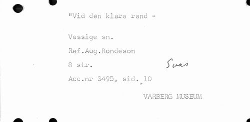 //// nVid den klara rand - //// Vesslge sn. //// Ref.Aug.Bondeson //// 8 str. //// Acc.nr 3495 5 sid. 10 //// VARBERG IviUSEUM ////