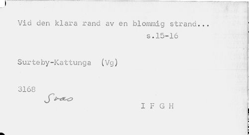 //// Vid den klara rand av en blommig strand... //// s.15-16 //// Surteby-Kaitunga (Vg) 3168 //// I F G H I //// ¦ //// i //// ¦ //// ¦ //// ^ i ////
