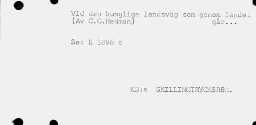 //// Vid den kunglige landsväg som genom landet (Av C.G.Hedman; cår... //// Se: E 1896 c //// KB:s SKILLINGTRYCKSREG. //// A ////