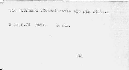 //// Vid drömmens vävstol satte sig min själ... B 13,s.21 Natt. 5 str. //// RA ////