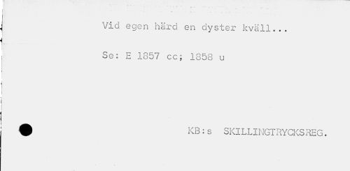 //// «# A \0 « //// Vid egen härd en dyster kväll... Se: E 1857 cc; 1858 u //// ^ KB:s SKILLINGTRYCKSREG. ////