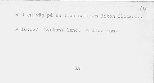 //// : ' ... /v //// Via en vag pa en sten satt en liten flicka... //// A 16:527 Lyckans land. 4 str. kom. //// HA ////