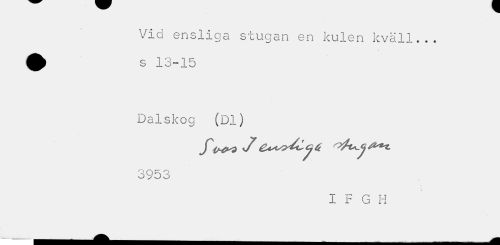//// Vid ensliga stugan en kulen kväll... //// Dalskog (Dl) 3953 //// I F G H ////