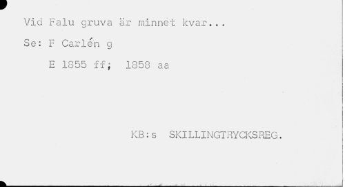 //// w //// Vid Falu gruva ax- minnet kvar... Se: F Garlen g //// E 1855 ff, 1858 aa //// < j //// KB:s SKILLINGTRYCKSREG. j //// { //// i //// i ¦ //// i //// ^..._... i/___x a . i.. .. ^ . , ////