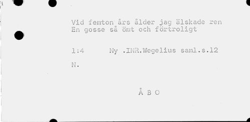 //// Vid femton års ålder jag älskade ren ^^ En gosse så ömt och förtroligt //// 1:4 Ny .INR.We ge1iu s saml.s.12 //// N. //// ÅBO //// Ä ___i_A ////