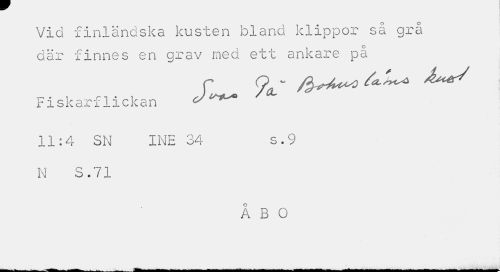 //// Vid finländska kusten bland klippor så grå där finnes en grav ined ett ankare på //// Fiskarflickan J //// 11:4 SN INE 34 s.9 //// N S . 11 //// ÅBO ////