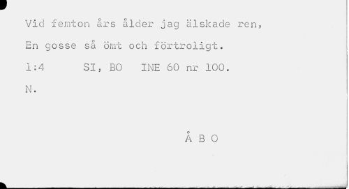 //// Vid femton års ålder jag älskade ren, En gosse så ömt och förtroligt. 1:4 SI, BO INE 60 nr 100. //// N. //// I //// ÅBO ////