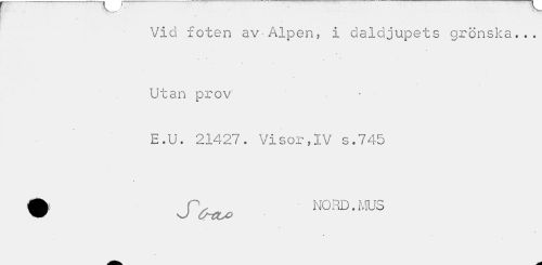 //// Vid foten av-Alpen, i daldjupets grönska... //// Utan prov • //// E.U. 21427. Visor,IV s.745 //// • C, ¦ NORD. MUS ////