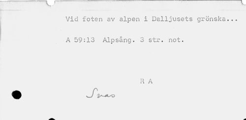 //// Vid foten av alpen i Dalljusets grönska... A 59:13 Alpsång. 3 str. not. //// R A ////