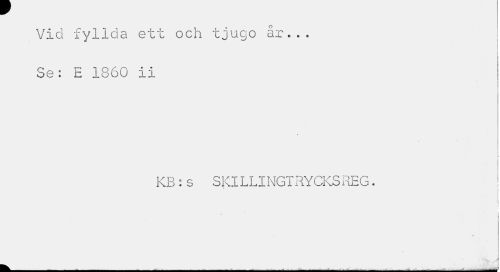 //// Vid fyllda ett och tjugo år... Se: E 1860 ii //// KB:s SKILLINGTRYCKSREG. //// i i //// ¦« / //// ^___-___.___.___.___ ___ ___.___ __ ---—___^r-' ////