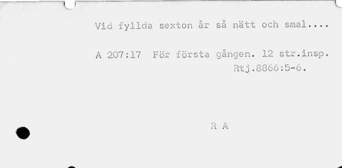 //// Vid fyllda sexton år så nätt och smal... //// A 207:17 För första gången. 12 str.Insp. //// Rtj.8866:5-6. ////