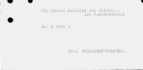 //// Vid första kallelse att dricka... //// (av P.A.Granberg) //// Se: E 1840 s //// KB:s SKILLINGTRYCKSREG. ////