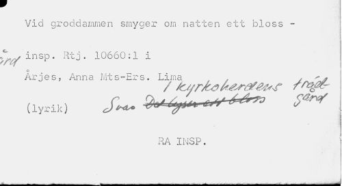 //// Vid groddammen smyger om natten ett bloss -v* insp . Rt j ? 10660 :1 i //// o //// Arjes, Anna Mts-Ers. Lima . / * //// RA INSP. //// — - — - - - - - - - ~ ////